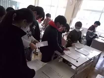 給食・美化委員会は、常時活動の反省や改善点の話し合い、放送委員会は「卒業生に伝えるメッセージ」の活動のまとめ、運動・緑化委員会は持久走運動のためにグランド整備やトラック引きを行いました。5・6年生のみなさん、学校のためにありがとう、お疲れ様でした。