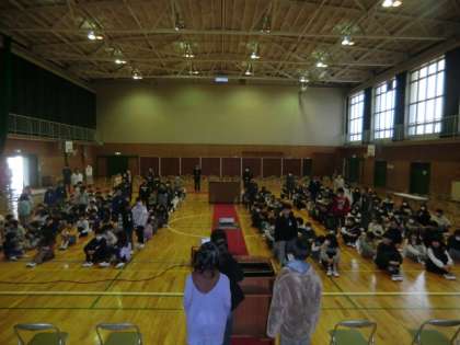 今年度最後の朝会を行いました。前期児童会役員の任命、表彰のあと、私からは自分が受けた恩をその人だけでなく周りの人に返していく「恩送り」の話をしました。図書委員会が図書館の本をたくさん借りた多読賞の表彰をしてくれました。