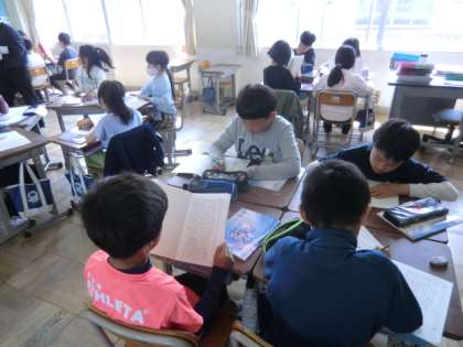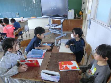 4年生です。「楽しく書こう(なりきって書こう/つづけてみよう)」の学習です。いろいろなものになりきって、それを、友だちに伝わるように表現して書きます。うまく伝わえられたかな?