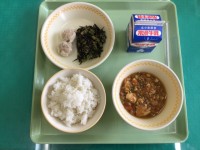 ・牛乳 ・ごはん ・キャベツ入りメンチカツ ・野菜のおかか和え ・たまねぎのみそ汁 ・いちごヨーグルト
