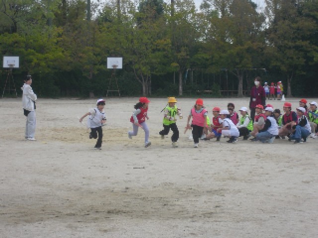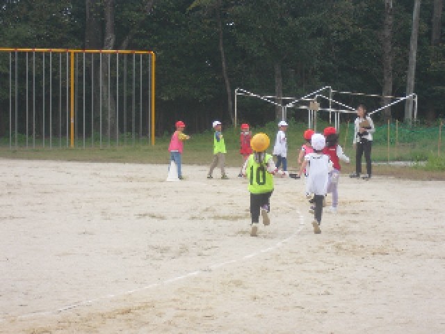 放課のなかよしタイムの時間をつかって、リレーの練習をしています。