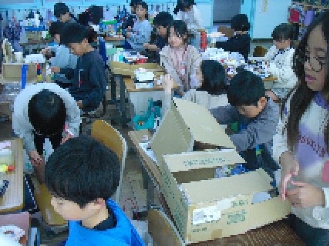 2年生の図画工作では、わたしのすむ家をそれぞれ作っています。