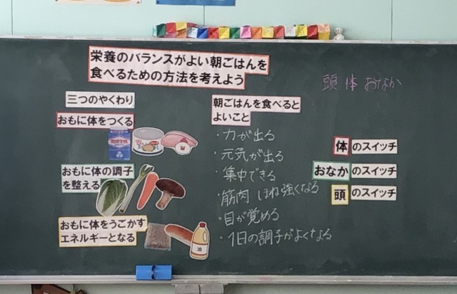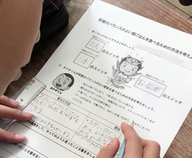「栄養のバランスがよい朝ご飯を食べる工夫」について考えました。自分にできることは何か?真剣に考えていました。