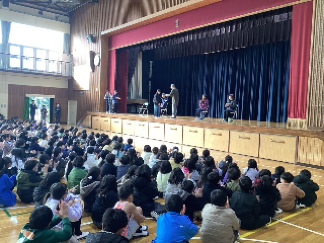 児童会のメンバーが代表して、児童全員が書いた手紙をお渡ししました。