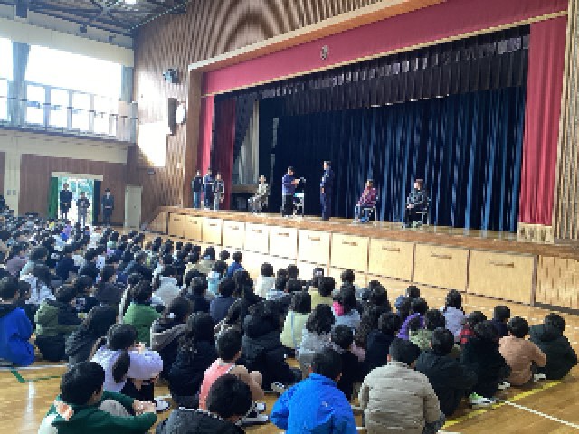 本日、お世話になっている方へ感謝の気持ちを伝えるために、交通指導員の方や図書ボランティアの方、PTA役員の方をお呼びし、感謝の会を行いました。