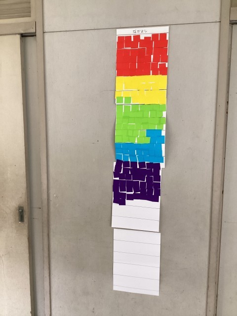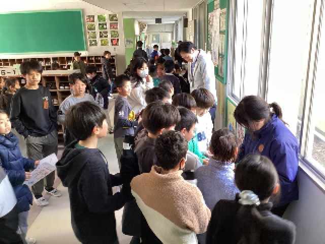 児童会主催のあいさつキャンペーンがありました。なかよしタイムの終わり頃になると、行列ができています。
