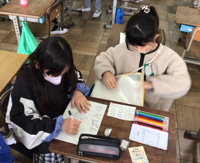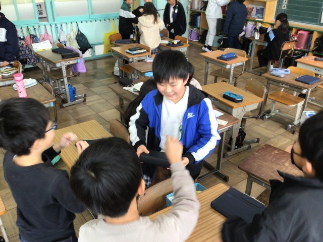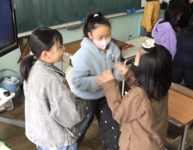 もうすぐ4年生も終わりです。3学期の"お楽しみ会"は、グループに分かれて出し物をすることになりました。ダンスやゲームやパフォーマンスなど、それぞれのグループが集まって準備、練習をしている様子です。「自分たちの企画を成功させたい!みんなに楽しんでもらいたい!」と、どのグループも気合いが入っています。当日が楽しみです。