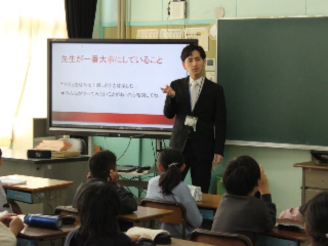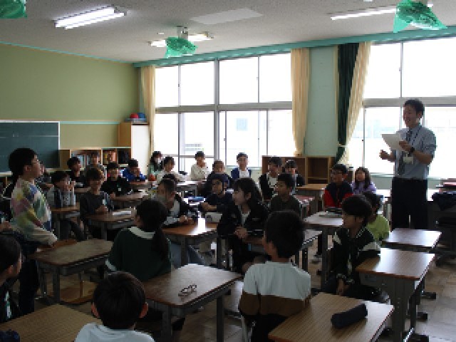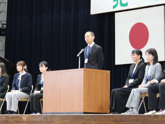 赴任式では、新たに旭北小学校にきた先生たちにお話をしてもらいました。