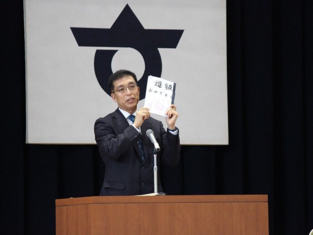 始業式では、校長先生からのお話を聞き、担任の先生の発表がありました。