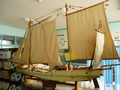 本校の資料室には、打たせ船の模型や実際に使われていた漁具が一部展示してあります。