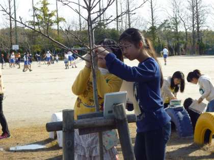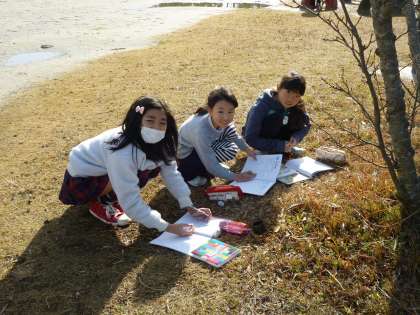 校庭に出て、冬の生き物を観察しました。
