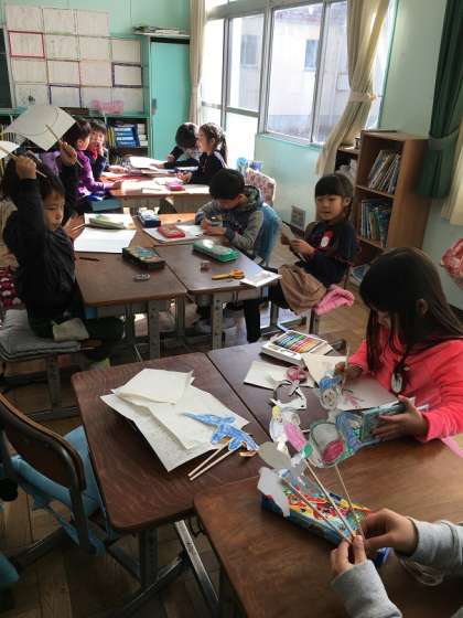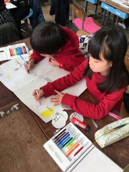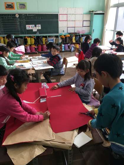 新1年生との交流会の準備を楽しそうにしています。自分たちでクイズや劇、すごろくなど考えています。