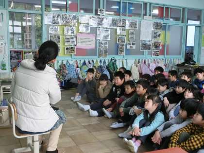 話を聴いて、時には笑ったり、時には内容をじっくりと考えたりし、本の世界に入り込んで楽しんでいます。また来月の読み聞かせも楽しみにしています。
