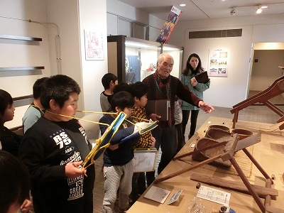 子どもたちは、いろいろな昔の道具を実際に見て、今との違いなどに驚いていました。