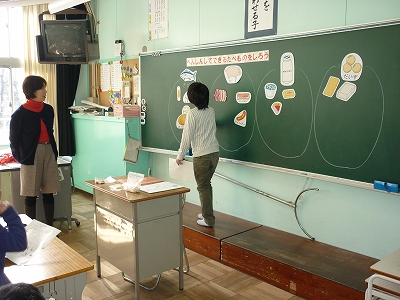 大豆や肉からいろいろな食材ができていることを初めて知った子どもたちは,とても嬉しそうでした。