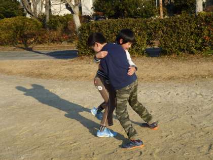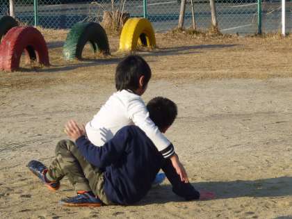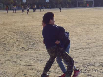 校内で相撲をとって遊んでいる姿は初めて見ました。