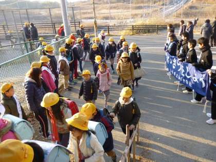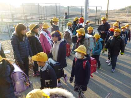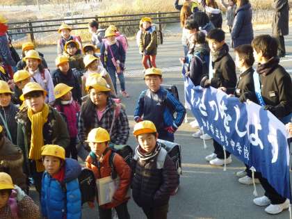 中学生(本校の卒業生)もあいさつ運動に駆けつけてくれ、小中合同でにぎやかに実施できました。