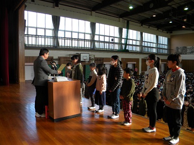人権を理解する作品コンクール、造形教育展、知多市民バスケットボール大会などの表彰、チアの入賞紹介などを行いました。