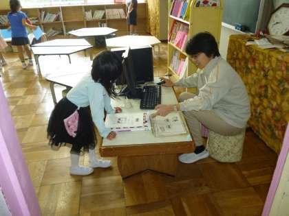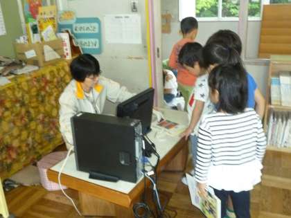 低学年図書館で本を借りる練習をしました。