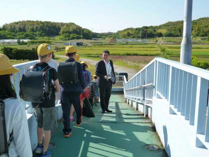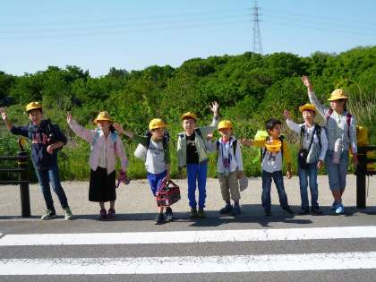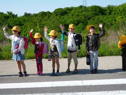 長浦の歩道橋では、子どもたちに、にこやかに声をかける知多中学校の校長先生に出会いました。いつもありがとうございます。