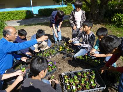 ・緑化委員会が草花を育てています。