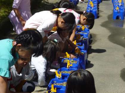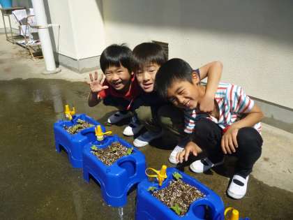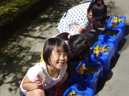自分のあさがおが育ってくれて、とてもうれしそうです。