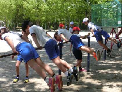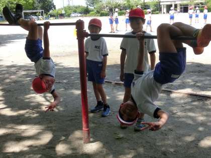 3年生の体育では、鉄棒運動が始まりました。