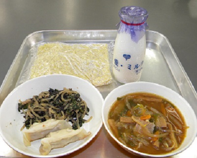 今日のみそラーメンのスープには豆みそが使われています。みそは飛鳥時代に中国から伝来した発酵食品の「醤(ひしお)」がルーツです。「大宝律令」に記載がある「未醤(みしょう)」が「みしょ」→「みそ」になったといわれています。