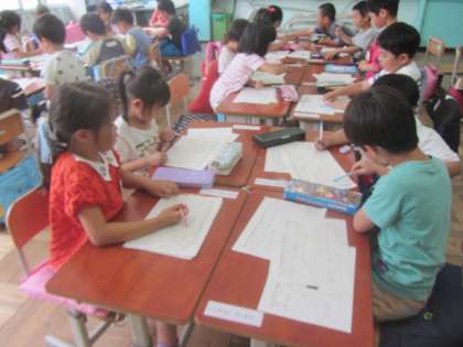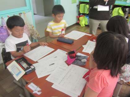 明日は2回目の学校探検です。担任が付きそうのではなく、今度は自分たちだけで探検します。どきどきわくわくです。まずは、探検するグループを作り、どの順番でまわるのか計画を立てました。