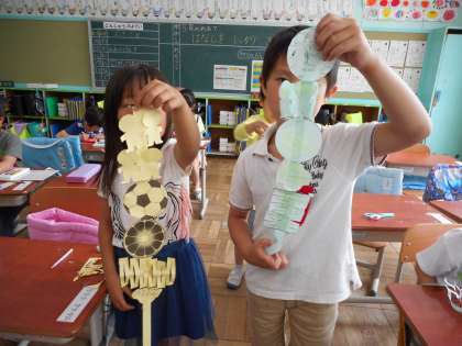1年図画工作、はさみの学習です。