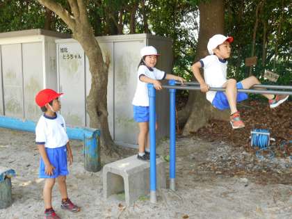 電車をつくって、運転手さんが好きな遊具にお客さんを連れて行きます。