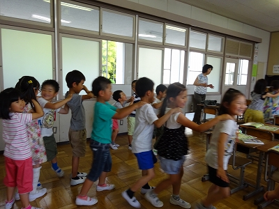 「かもつれっしゃ」の曲を歌いながら、じゃんけんゲームを楽しみました。