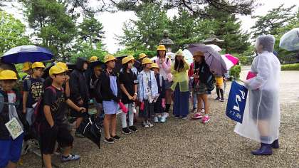 学級ごとにガイドさんの話を聞き、実際に見て回りました。