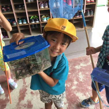 虫かごを大切そうに抱えた1年生がやってきました。