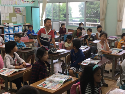 朗読が終わった後は感想の発表です。いっせいに手が挙がったのは言うまでもありません。