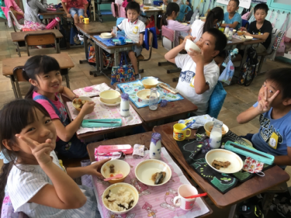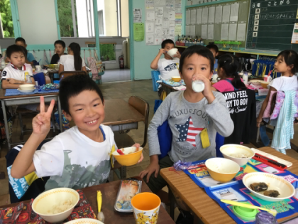 給食の時間は笑顔でいっぱい。