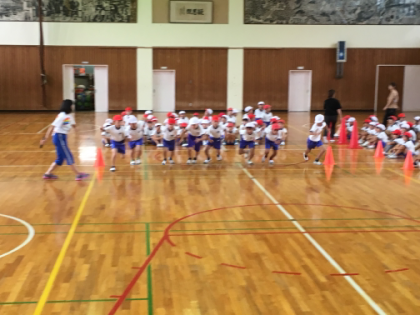 今日は雨天のため、運動会の練習は体育館で行いました。