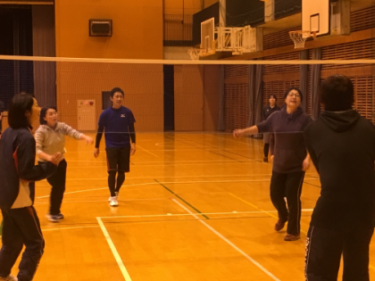 今日の勤務終了後に、知多中の体育館に集まり戦いました。