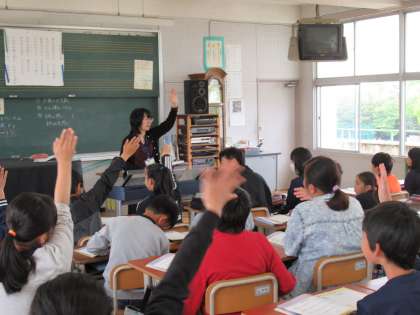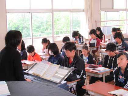 6年生の音楽です。「おぼろ月夜」の学習をしていました。歌うだけでなく、歌詞のこと、旋律のリズムのことなどを、教科書の楽譜をもとにみんなで考えていました。そして、考えてまとめたことをふまえて歌っていました。きれいな声が響いていました