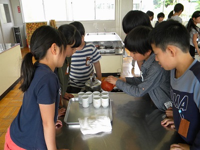 今日は、家庭科室の調理器具を初めて使う実習です。