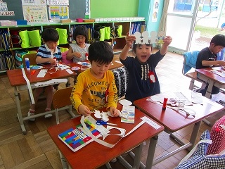 今週の図工は、来週の図画工作「チョキチョキ かざり」のために、はさみの使い方を学習しました。紙を動かしながら円を切ったり、人間の形を切ったりと、上手にはさみを使うことができました。