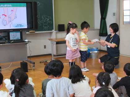 1年生の学活で、ぞうきんの使い方を学習しました。ダスキンさんの学校向けのプログラムにより、各学級、机のふき方、ぞうきんのしぼり方などを、ていねいに教えていただき、最後には修了証もいただきました。これからの学校生活にぜひ生かしていきたいですね。