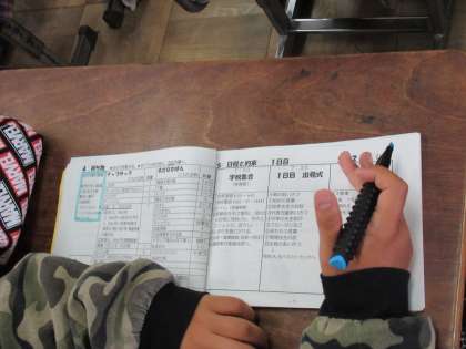 6年生の教室で、昨日完成したしおりを使って、日程確認が行われていました。修学旅行は先生と子どもたちで力を合わせて準備をしていきます。当日は、すべて先生の指示を待っているわけでなく、しおりにある行程表をもとに自分たちでやるべきことをやっていきます。集団行動での団体旅行ですので、こういうことも大事な勉強です。楽しい中に、たくさんの学びが凝縮されています。