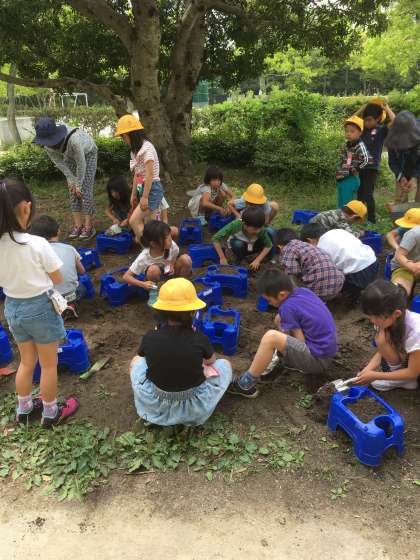 生活科の勉強で、夏野菜の苗を植えました。どの子も説明をしっかりと聞いて、苗を植えることができました。