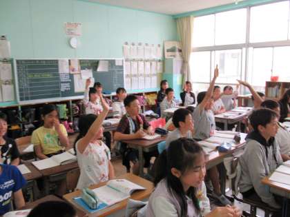 5年生の算数です。図形の学習が進んでおり、今日は複雑な図形の体積を、工夫して求める学習をしていました。低学年から積み上げてきた図形の学習が、5年にはこのようなところまで到達します。授業でいっぱい考え、友達の考えを聞き、正しく処理できるようになっていってくださいね。