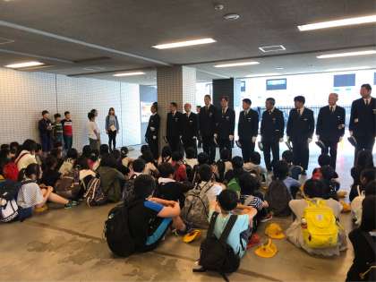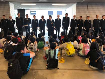 その後、旭北小学校の出発式を行いました。大きな声で「よろしくお願いします!」と挨拶をしました。
