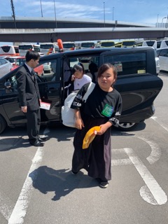 タクシーが帰って来ました。2時ごろに京都を出発して帰ります