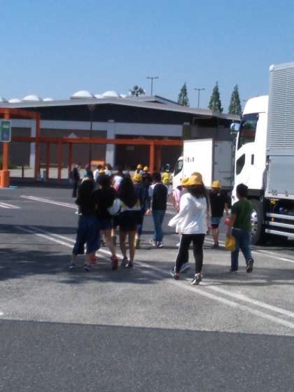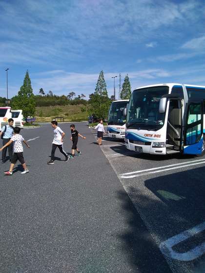 修学旅行中の6年生です。渋滞もなくスムーズに土山サービスエリアに到着し、トイレ休憩をとりました。そして、バスはいま知多市を目指して出発しました。