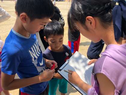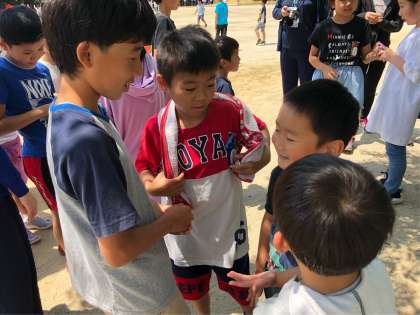 児童会の児童が企画したペアとトレジャーハンターを行いました。運動場のいろいろなところに隠されている折り紙で作った動物などをペアで探しました。ペアとの思い出がまた一つ増えました。