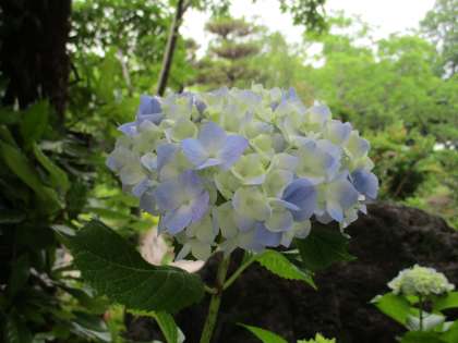 校長室の前のあじさいが咲いてきました。とても上品な、淡い色のあじさいです。